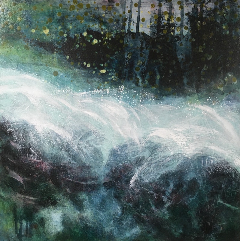 The WATERSCAPE PAINTINGS shown below are about the way water interacts, changes and carves out the land on its way down to the ocean. They relate to Little Qualicum River Falls and French Creek Estuary, and aim to capture